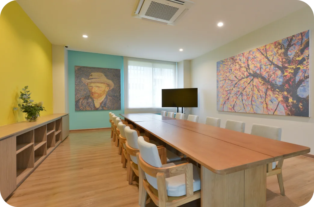 ห้องประชุมขนาดกะทัดรัดและเงียบสงบ เหมาะสำหรับการหารือกลุ่มเล็ก เวิร์กช็อป หรือกิจกรรมที่ต้องการความเป็นส่วนตัว พร้อมสิ่งอำนวยความสะดวกครบถ้วน และบรรยากาศที่เอื้อต่อการพูดคุยและสร้างสรรค์ไอเดียใหม่
